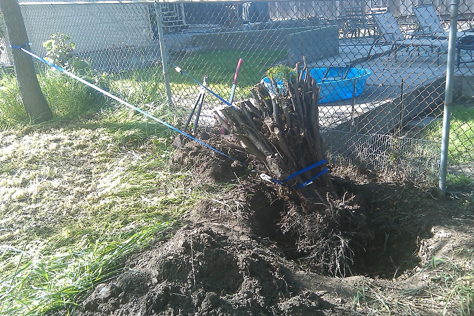 Start by placing your plant where you want it. Dig a hole roughly 1.5X the size of the plant to be place there.