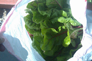 Who knows what Chard is? Well, I'll tell you then. It's a leafy plant in the lettuce family. It is more closely related to beets though. It is simply a bunch of leaves growing from a base of roots. Then you hack them off and eat them when they are about as big as the picture on the right.